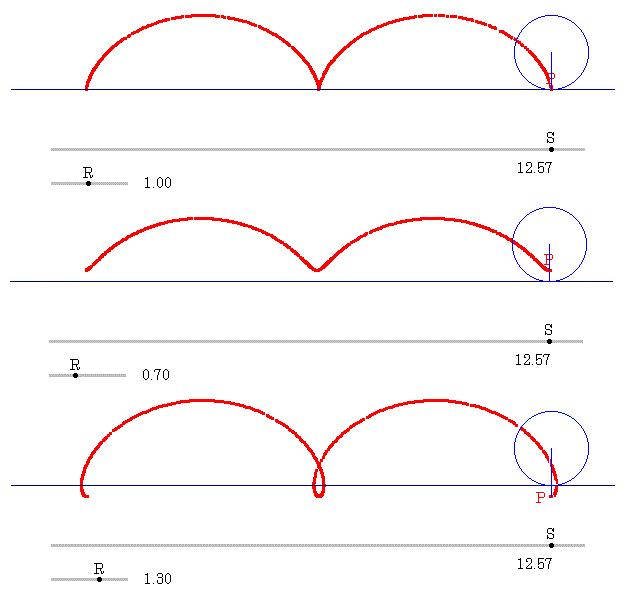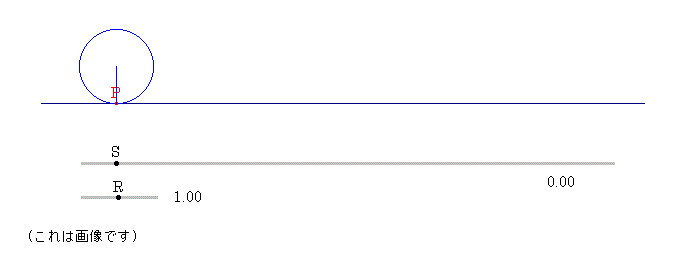 点Sをドラッグして点Pの軌跡をみて下さい。 点Rをドラッグすると点Pの中心からの距離が変化します。