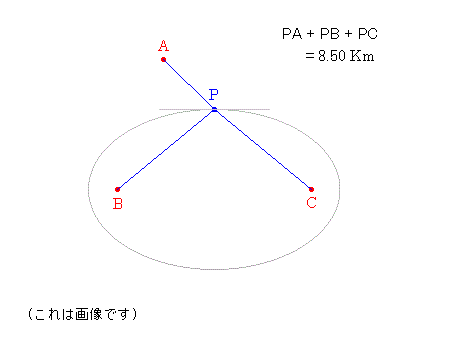 A,B,Cの3つの町を結ぶ道路を建設するのに,