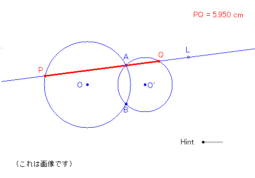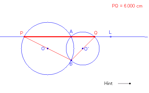 A を通る直線 L が O,O' と交わる点を P,Q と