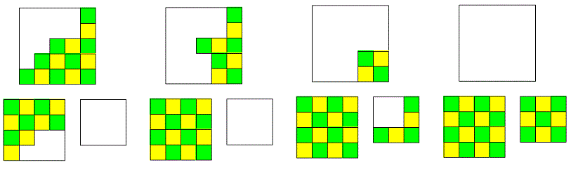 正方形を4つに分割し,それらを平行移動して