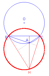 △ABC の垂心を H,外心を O とする。A が円 O の