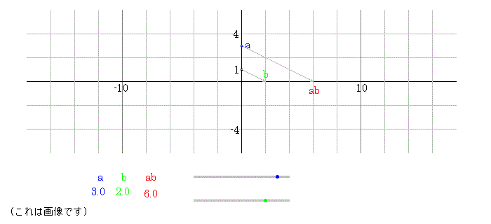 平行線を使って 1 → b ( b倍 ), a → ab ( b倍 ) となる。