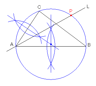 直線L上にあり,∠ACB = ∠APB となる点Pを