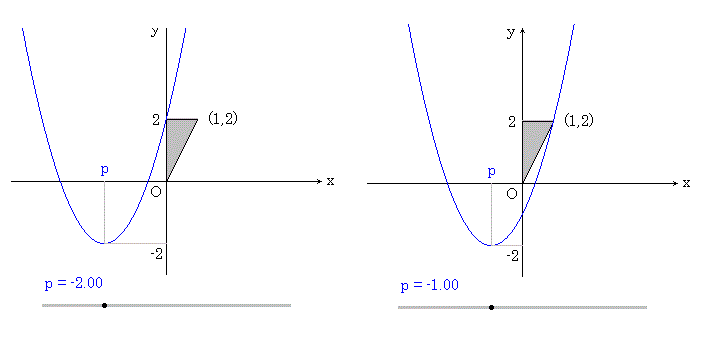 ( 2,1),( 0,2) を頂点とする三角形と交わる