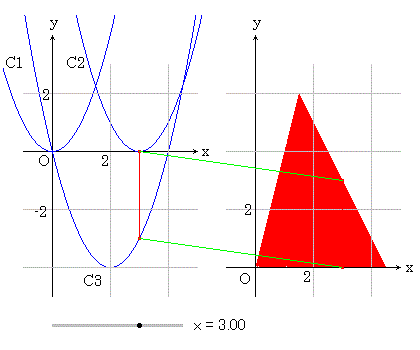 (4) について 求める面積は,三角形の面積と等しくなります. 戻る |