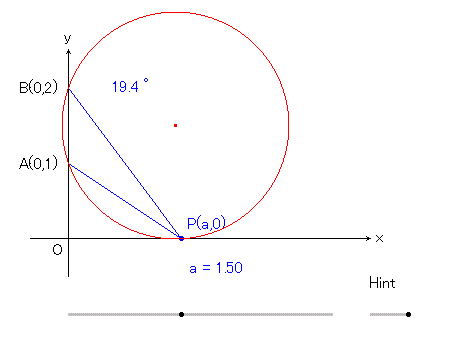 動く点 P ( a,0 ) に対し,θ = ∠APB とおく。